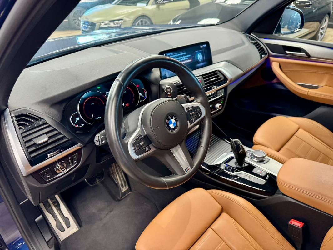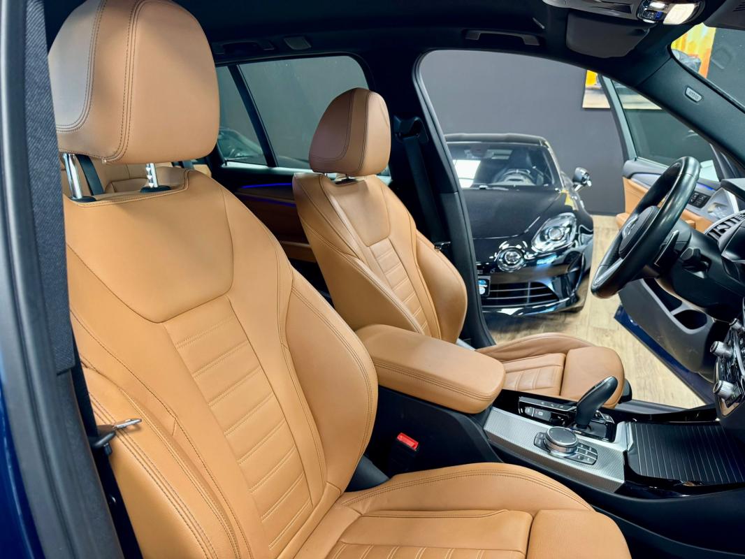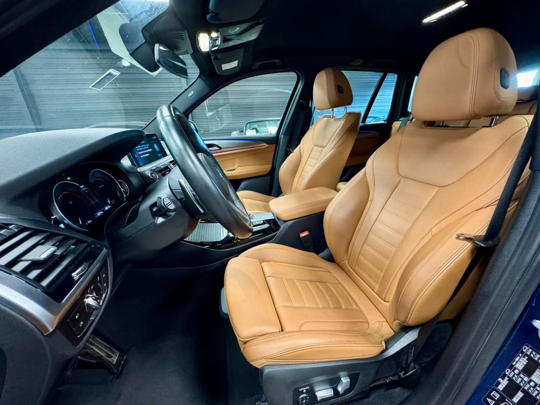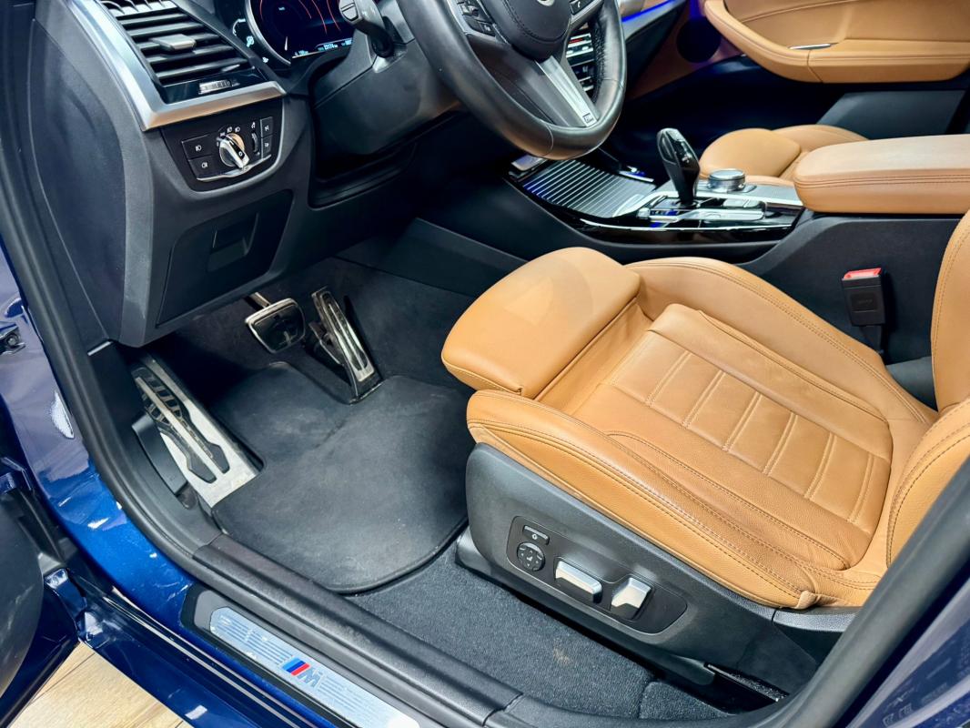 Disponible à notre adresse : Pont Maréchal, 42120 Saint-Vincent-de-Boisset 39990 € (G01) XDRIVE20DA 190 11CV M SPORT 5p, diesel, bleu foncé, 31/01/2018, première main, Nombre de roues motrices : 4, pack mémoire conducteur, jantes aluminium, Feu arrière à LED, démarrage sans clé, palettes au volant, phares à LED, limiteur de vitesse, détection des panneaux routiers, rétroviseur interieur electrochromeInformation