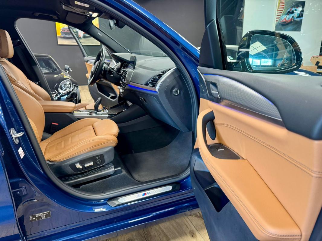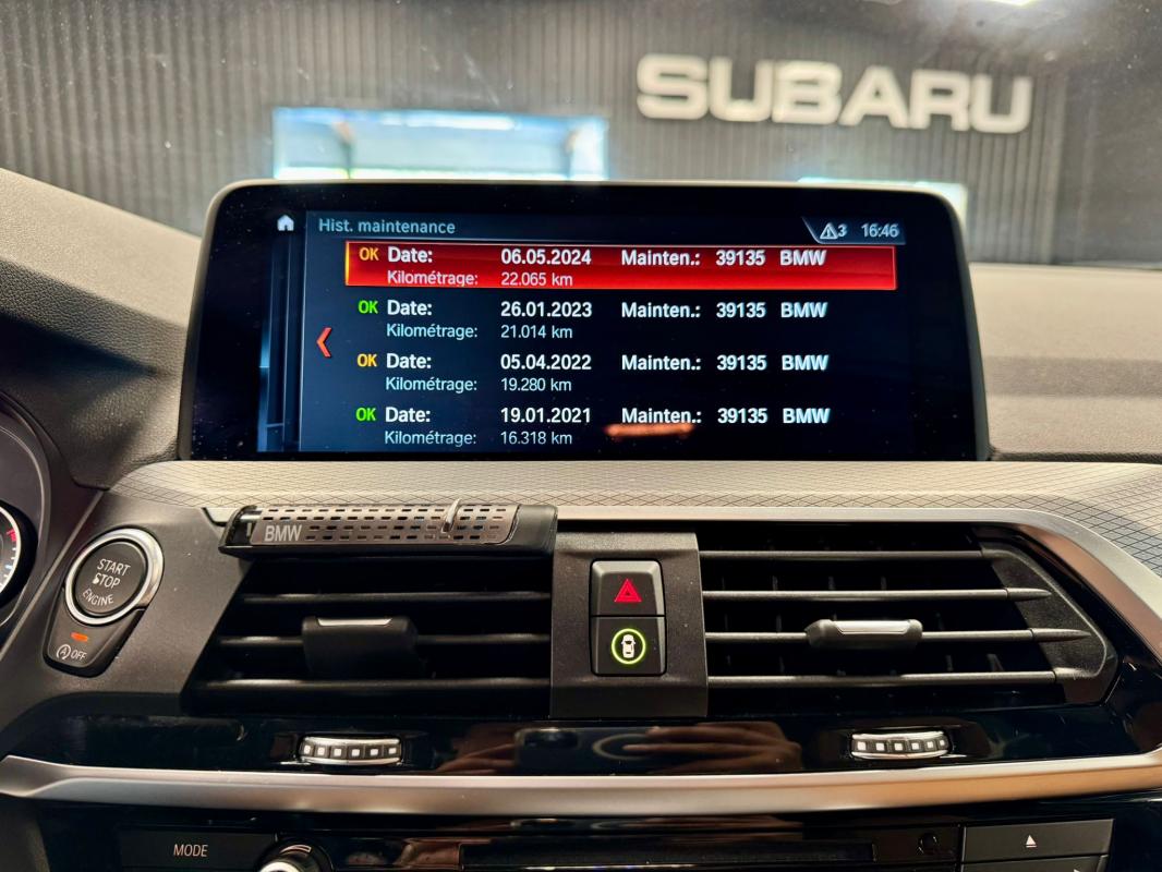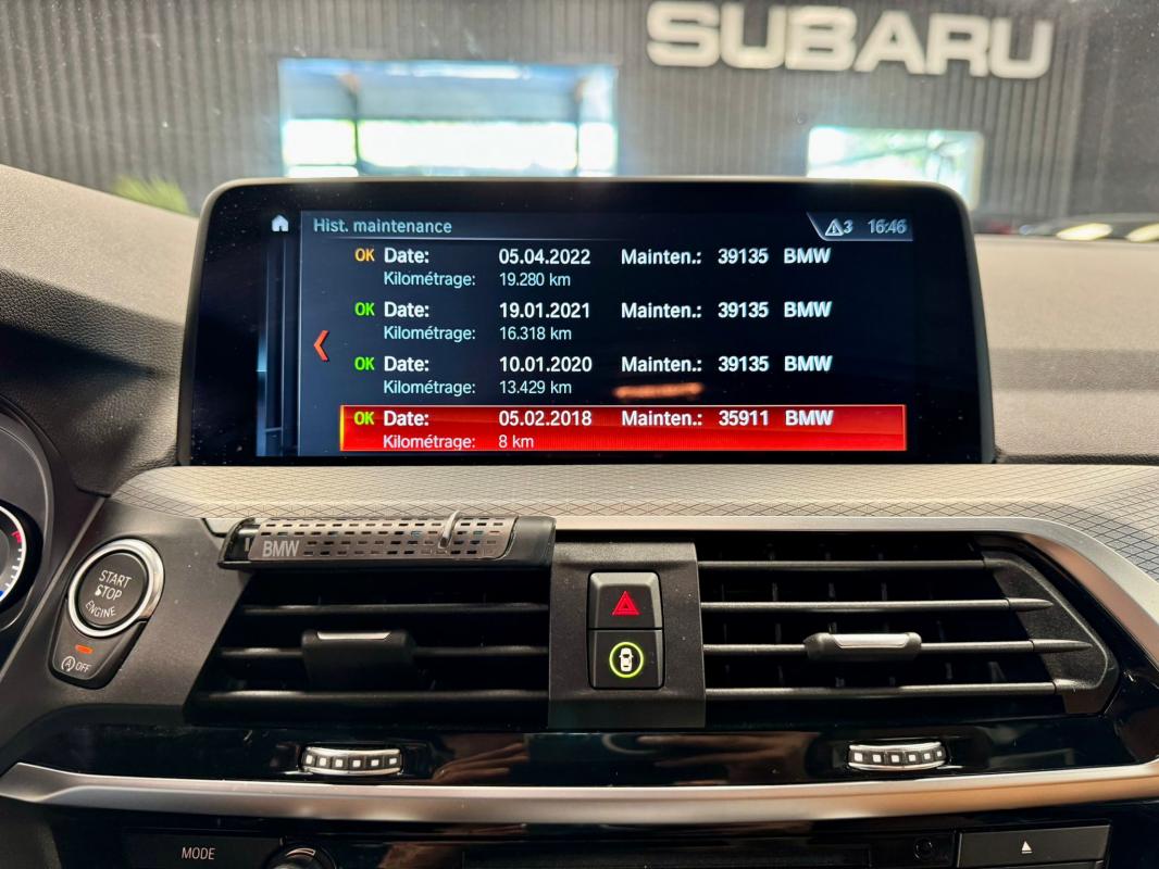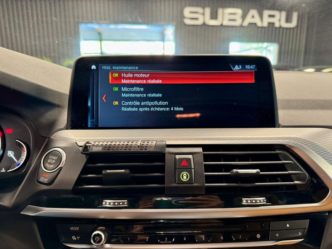 Disponible à notre adresse : Pont Maréchal, 42120 Saint-Vincent-de-Boisset 39990 € (G01) XDRIVE20DA 190 11CV M SPORT 5p, diesel, bleu foncé, 31/01/2018, première main, Nombre de roues motrices : 4, pack mémoire conducteur, jantes aluminium, Feu arrière à LED, démarrage sans clé, palettes au volant, phares à LED, limiteur de vitesse, détection des panneaux routiers, rétroviseur interieur electrochromeInformation