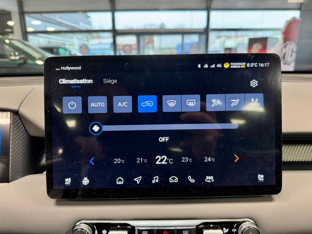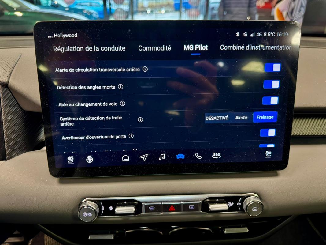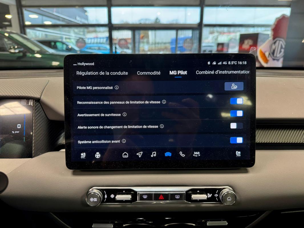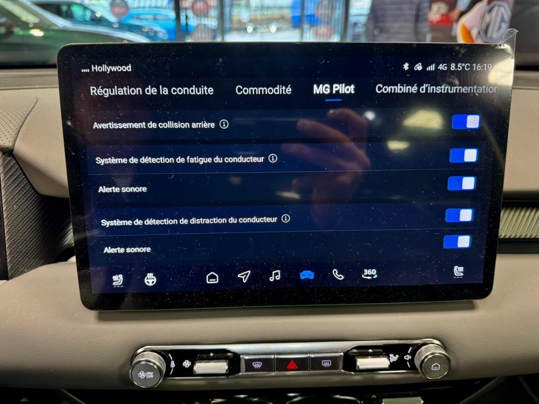 - equipements : caméra de recul 360, charge programmable, climatisation/chauffage programmable, MG Ismart, feux route adaptatifs, jantes 18, régulateur de vitesse adaptatif, carplay sans fil, application Youtube, application spotify, volant multifonctions,