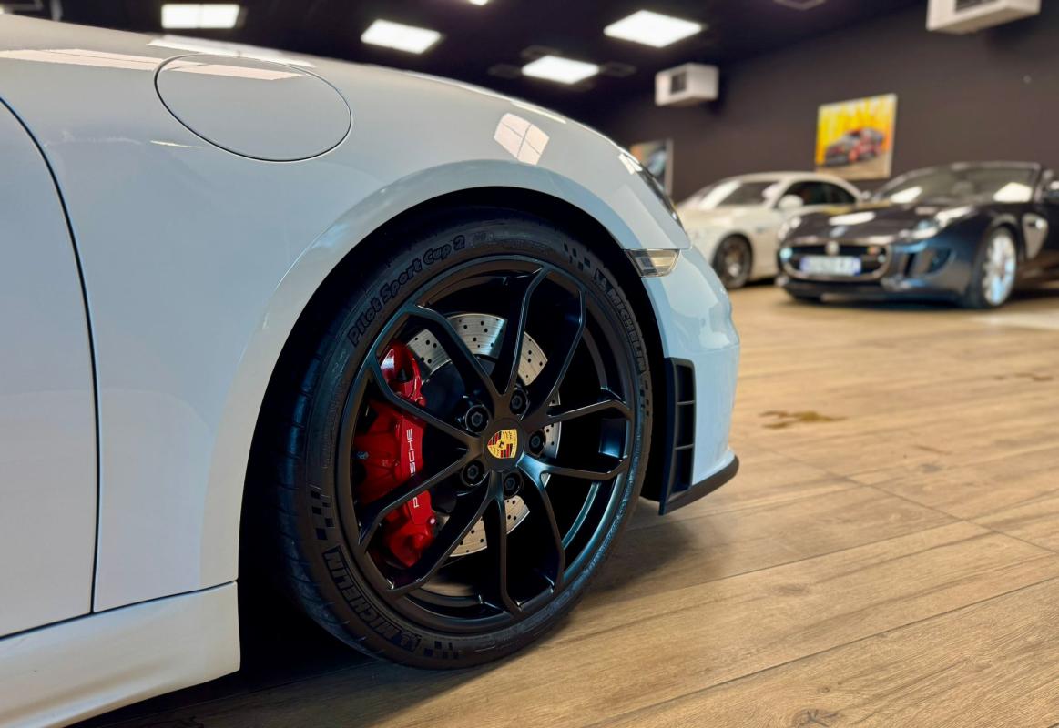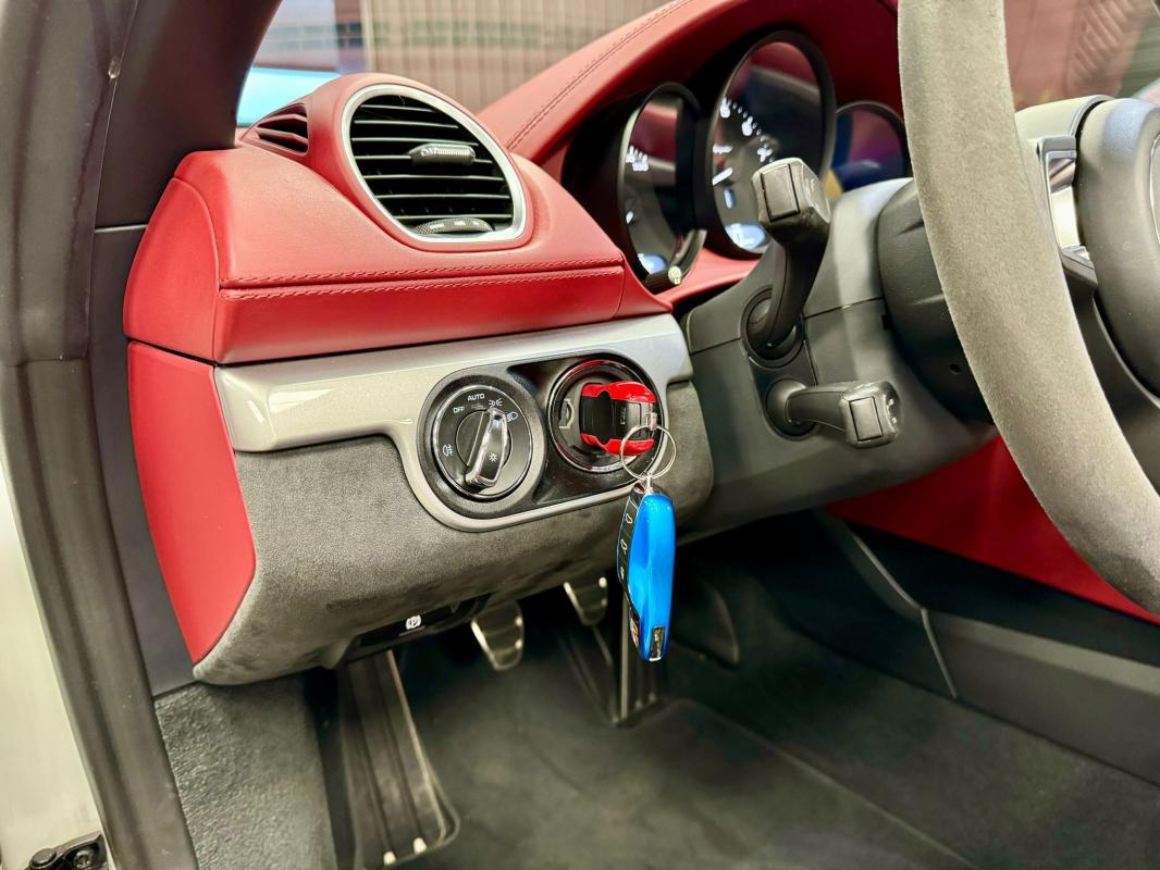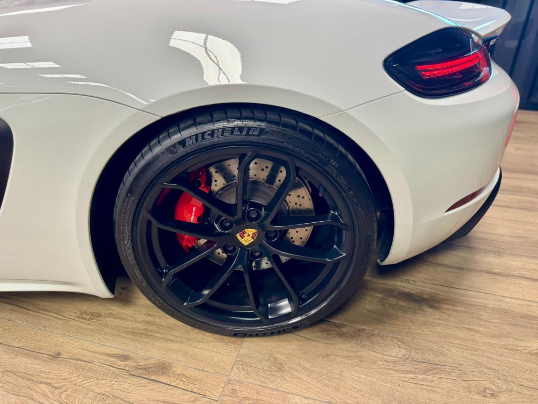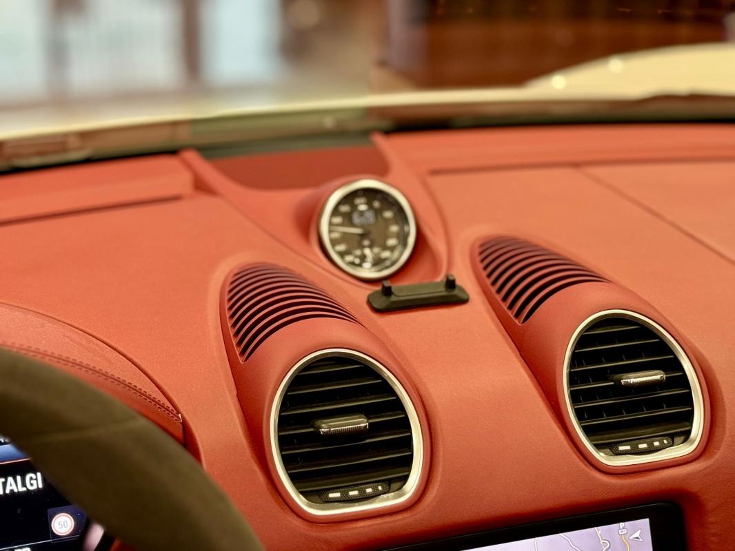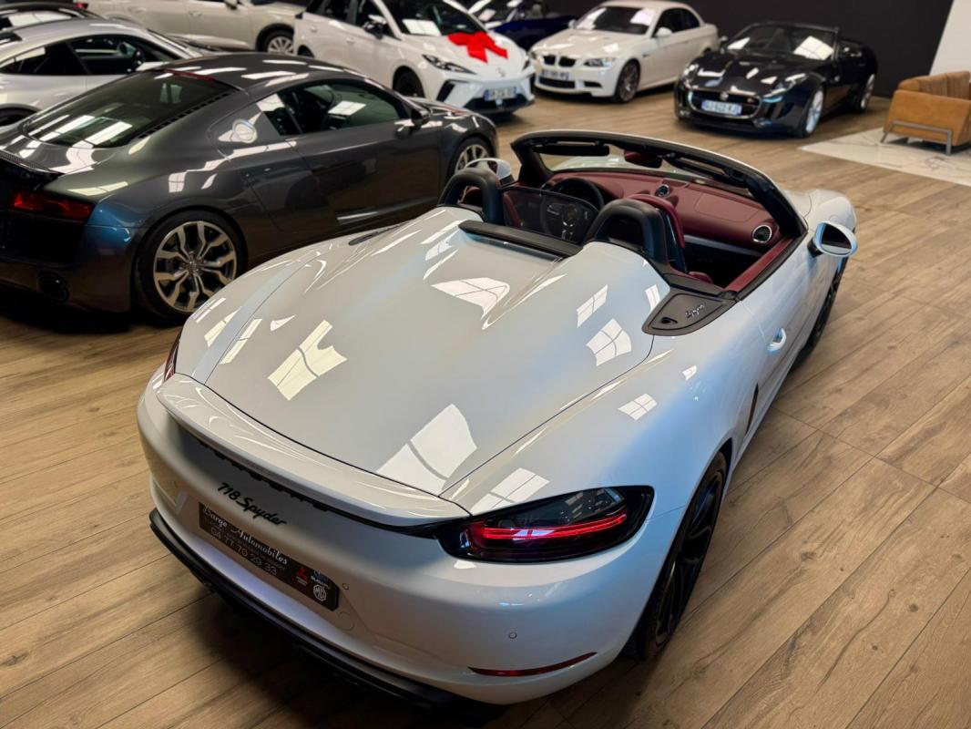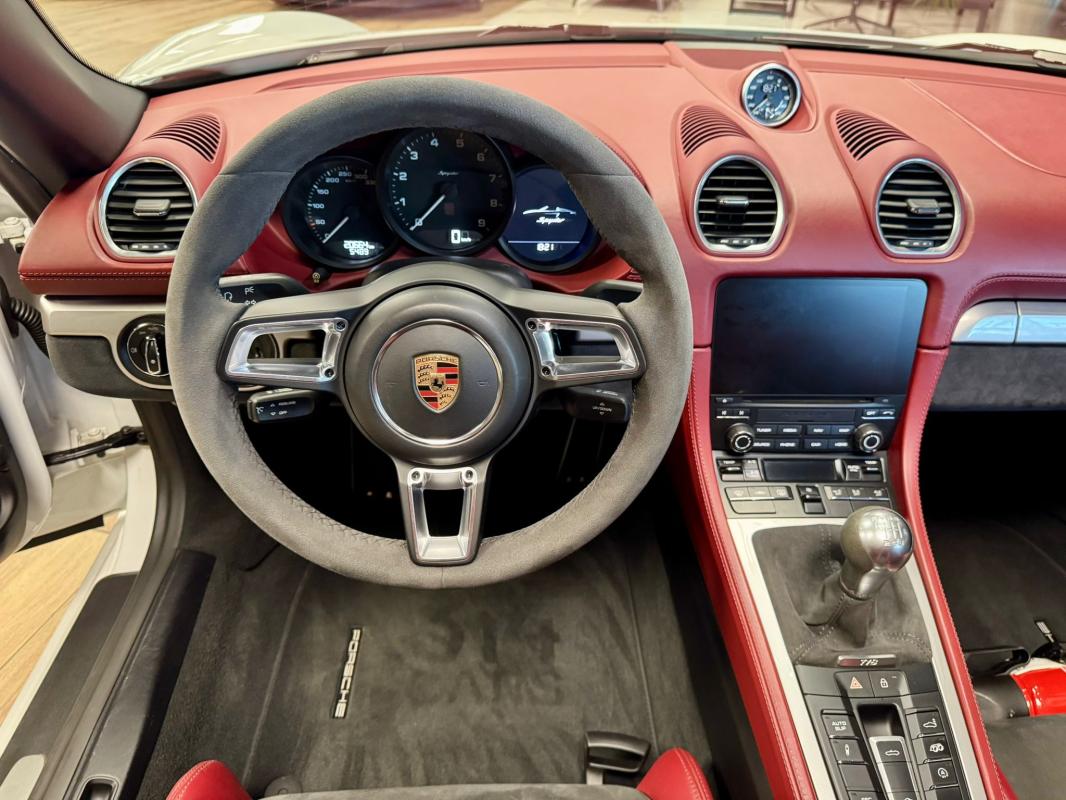 - equipements : capote bordeaux, capote manuelle, PDLS + sur fond noirs, covering Xpel intégral, Jantes noires 20, logo Porsche coloré sur les moyeux de roues centraux, cuir étendu sur le tableau de bord, sièges 918 Carbone, étriers de freins rouges, aileron réglable, PASM, PSE, pack sport chrono, échappement noir sport à valves, feux arrières teintés, intérieur cuir alcantara, carnet 100% Porsche à jour, Véhicule non accidenté, état proche du neuf, éligible au Porsche Approved, garantie de 12 à 60 mois constructeur