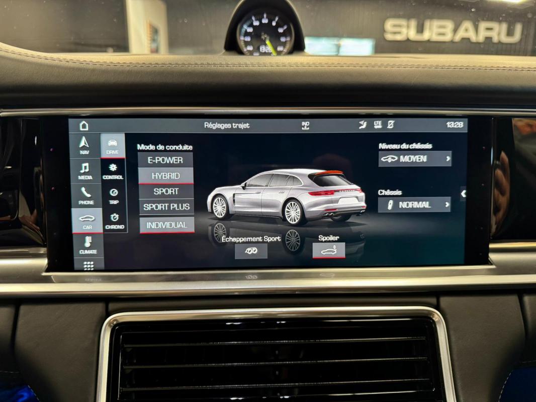 - equipements : 10 Haut parleurs, Commandes du système audio au volant, Ecran tactile, GPS Cartographique, Lecteur CD, Lecteur carte SD, Prise auxiliaire de connexion audio, Services connectés, TMC, Borne Wi-Fi, Commandes vocales, Fonction MP3, Interface Media, Lecteur DVD, Prise USB, Système de localisation par satellite, Arrêt et redémarrage auto. du moteur, Capteur de pluie, Follow me home, Mode de conduite, Régulateur de vitesse adaptatif, Capteur de luminosité, Démarrage sans clé, Guidage pour manoeuvre de stationnement, Palettes changement vitesses au volant, Suspension adaptative, Becquet arrière, Coffre assisté électriquement, Essuie-glace arrière, Feux de jour à LED, Jantes Alu, Poignées ton carrosserie, Radar de stationnement AV, Rétroviseurs rabattables électriquement, Sortie d'échappement noires, Boucliers AV et AR couleur caisse, Coffre avec fermeture à distance, Eclairage au sol, Feux arrière à LED, Feux de position à LED, Phares avant LED, Radar de stationnement AR, Rétroviseurs dégivrants, Rétroviseurs électriques, Accoudoir arrière, Bacs de portes arrière, Banquette 40/20/40, Porte-gobelets avant, Rétroviseur intérieur électrochrome, Siège conducteur électrique, Siège passager à réglages électriques, Verrouillage centralisé des portes, Vitres arrière électriques, Volant cuir, Volant réglable en profondeur et hauteur, Accoudoir central AV avec rangement, Ecran multifonction couleur, Fixations Isofix aux places arrières, Lampes de lecture à l'arrière;, Porte-gobelets arrière, Prise 12V, Siège conducteur réglable en hauteur, Assistance Parking avec Surround View, caméra 360, Feux arrière à LED avec bandeau lumineux teinté, Jantes Panamera SportDesign 21 pouces peinture couleur Noire, Pack SportDesign, Système d'échappement Sport Noir, Système de toit panoramique, Sorties d'échappement Sport Noir, Vitrage Privacy, Éclairage d'ambiance, BOSE Surround Sound System, Climatisation automatique 4 zones, Clé du véhicule peinte, Enjoliveurs de roue avec écusson Porsche en couleur, Entourage des vitres latérales couleur Noir, Pack intérieur cuir additionnel - Tableau de bord, Phares matriciels à LED teintés avec Porsche Dynamic Light System Plus, Servotronic plus, Sièges confort avant avec Pack Mémoire, Sorties d'air peintes, Sièges chauffants avant et arrière, Écusson Porsche sur les appuie-tête, Cuir Noir, Alerte de franchissement de ligne avec détection de la signalisation routière, Gris Craie, carnet complet, PACK CHRONO